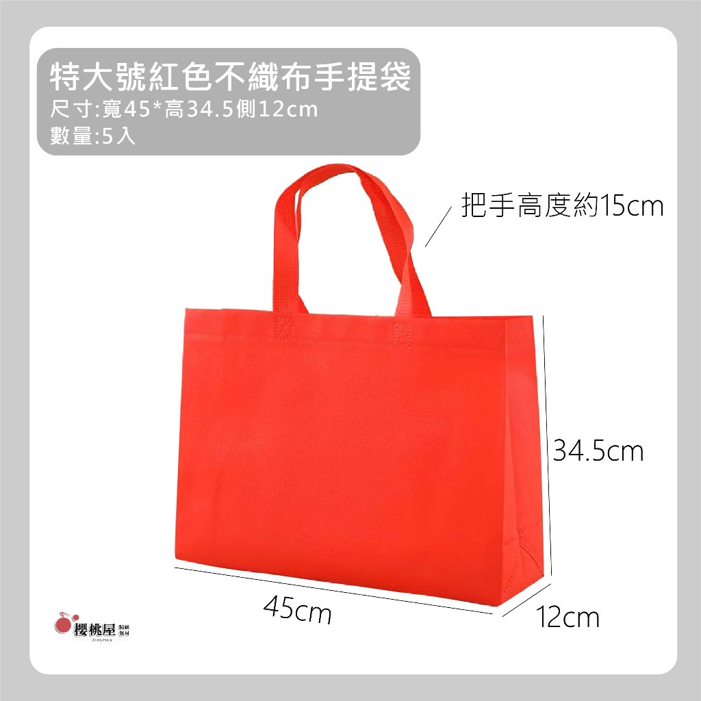 | 櫻桃屋 | 紅特大號不織布手提袋【5入】