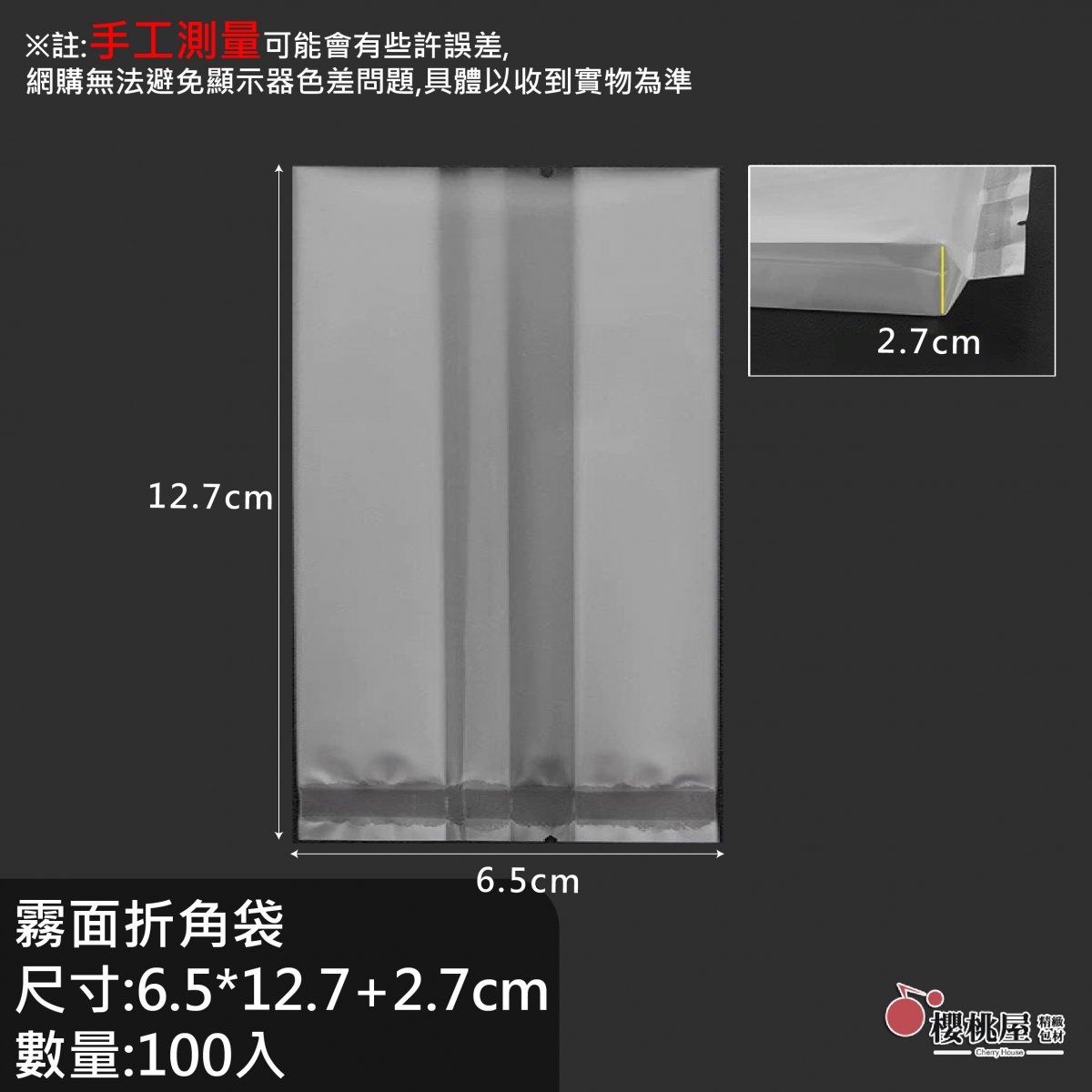 | 櫻桃屋 | 6.5*12.7+2.7折角背封袋【100入】