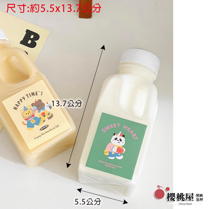 > | 櫻桃屋 | 6入牛奶瓶+貼紙 5.5x13.7公分,300ml
