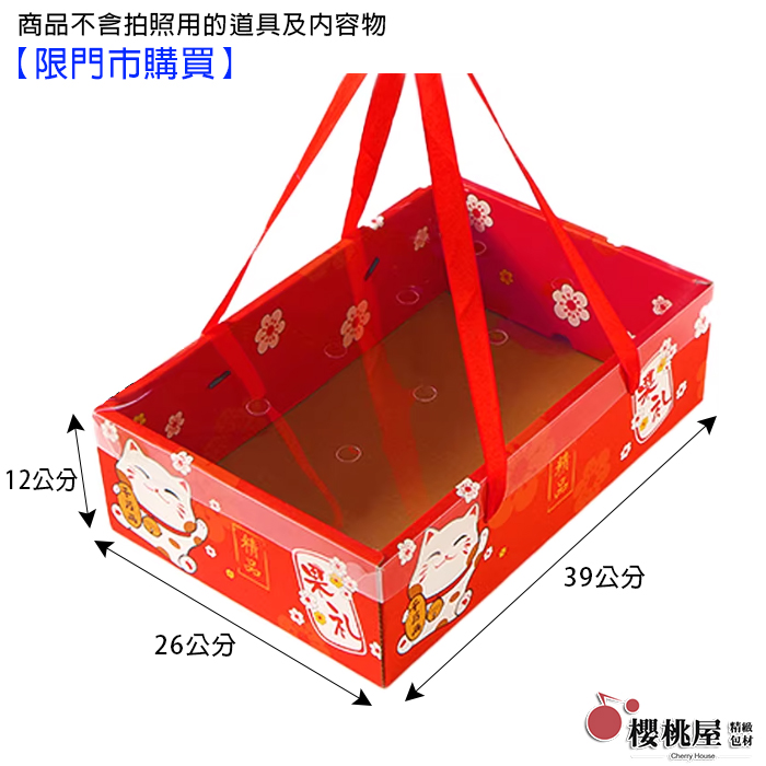 招財貓透明蓋提盒39x26+12cm