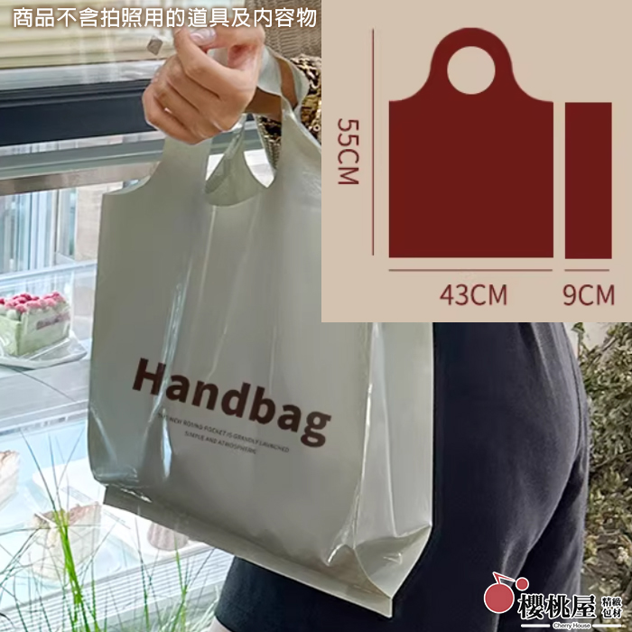 50入大圓口英文煙灰PE手提袋 43x55+9cm