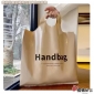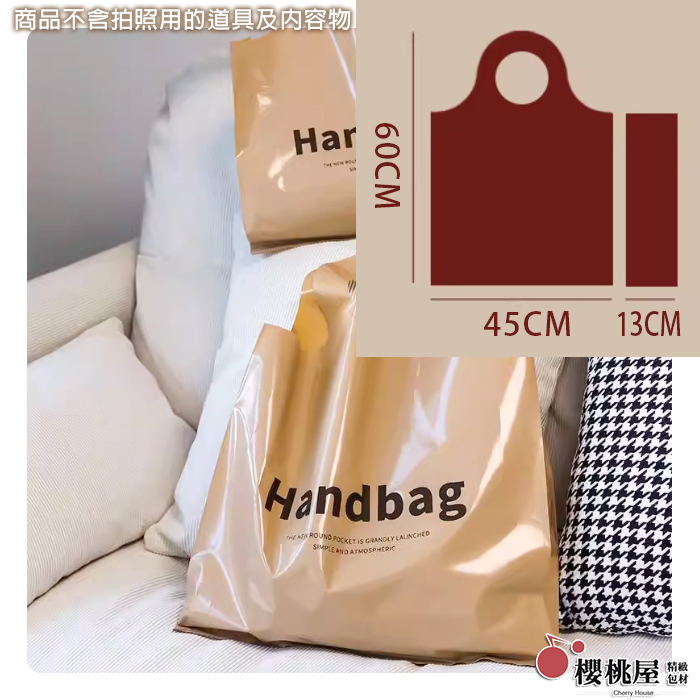 50入加大圓口英文卡其PE手提袋 45x60+13cm