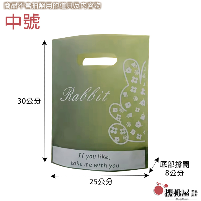 50入中號小兔軍綠磨砂打洞袋 25x30+8cm