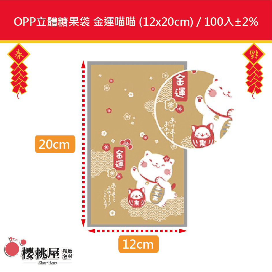 OPP立體糖果袋 金運喵喵 (12x20cm) / 100入±2%