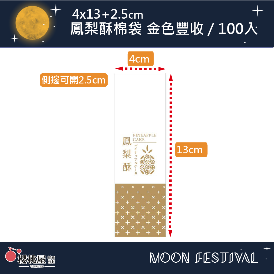 4*13+2.5CM 鳳梨酥棉袋 金色豐收 鳳梨酥袋 餅乾袋 棉袋 / 100入