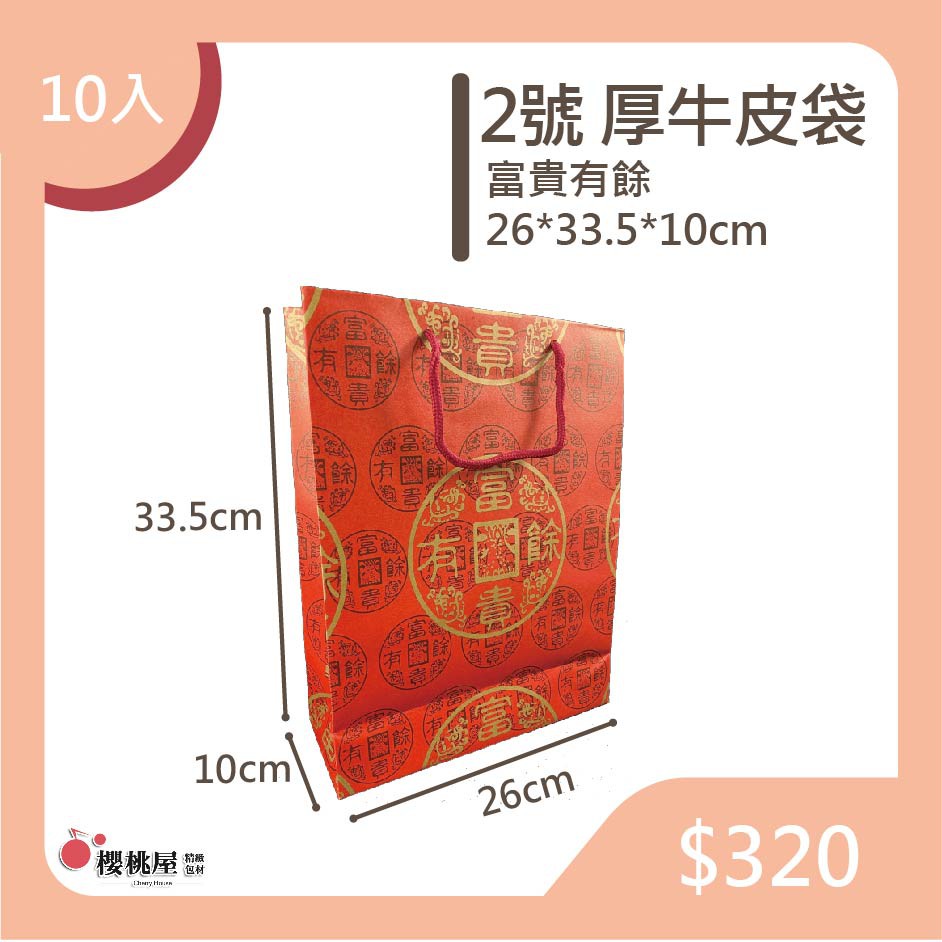 福袋 2號 厚牛皮袋 富貴有餘 包裝袋 禮品袋 / 10入