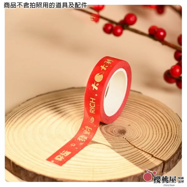 燙金大吉大利紅底紙膠帶 1.3cmx10m