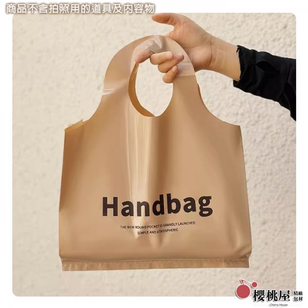 小圓口英文卡其PE手提袋 30x39+8cm【50入】