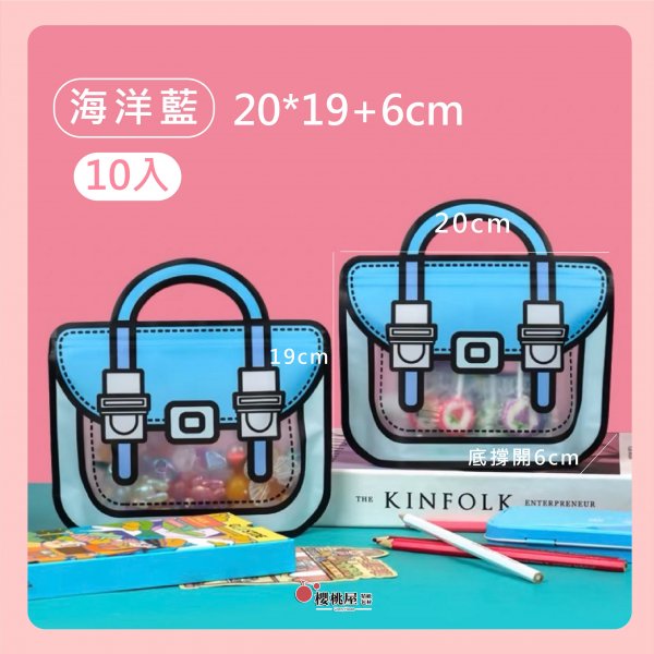 | 櫻桃屋 | 可愛書包手提夾鏈袋-20*19+6海洋藍【10入】