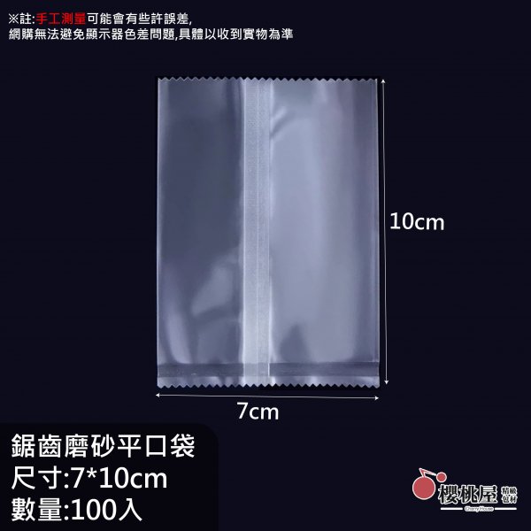 NT$ 50| 櫻桃屋 | 7*10鋸齒磨砂平口袋【100入】
