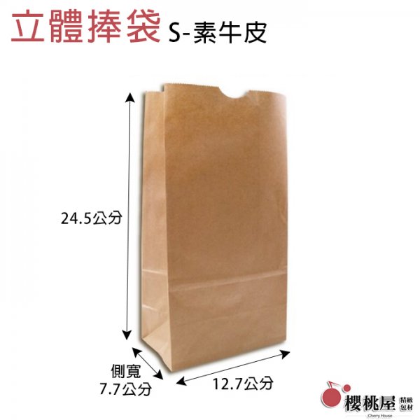 | 櫻桃屋 | S立體紙袋12.7x24.5x7.7cm【50入】牛皮紙袋