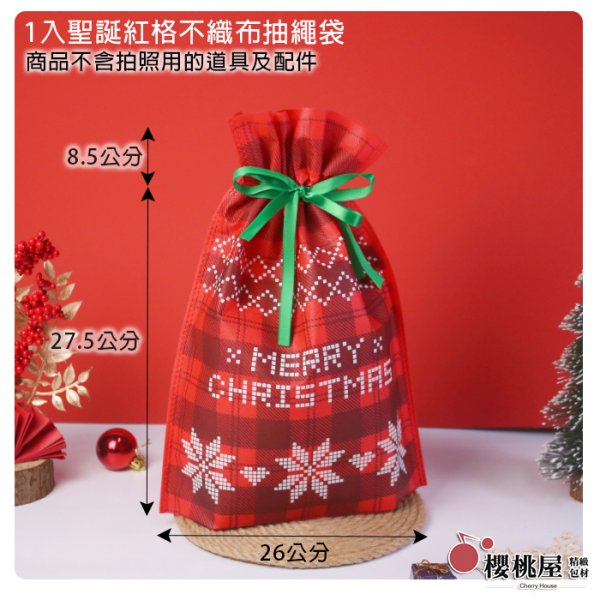 | 櫻桃屋 | 1入聖誕紅格不織布抽繩袋