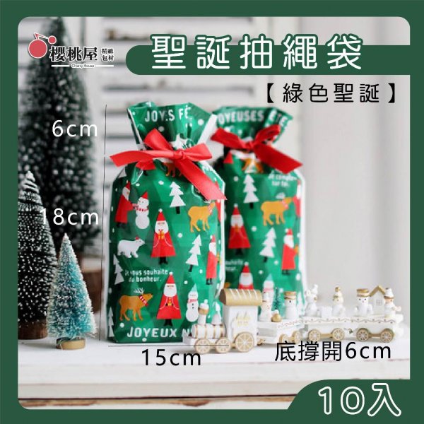 | 櫻桃屋 | 10入中號綠色聖誕抽繩袋