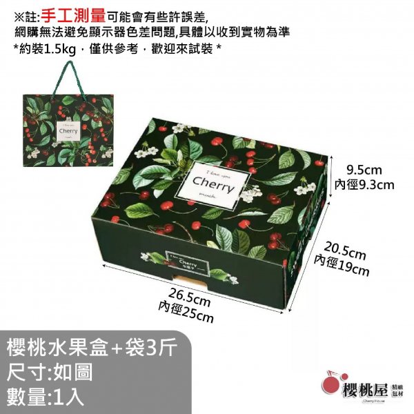 NT$ 100| 櫻桃屋 | 3斤(約1.5kg)櫻桃水果盒+袋【1入】