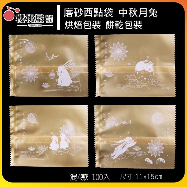 NT$ 130|櫻桃屋| 11*15CM 磨砂西點袋 月兔 餅乾袋 中秋 月餅袋 封口袋 / 100入