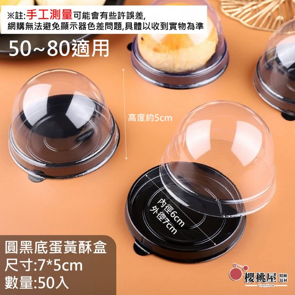 NT$ 100| 櫻桃屋 | 50~80g圓黑底蛋黃酥盒【50入】