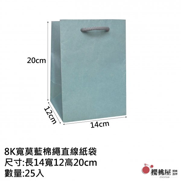 | 櫻桃屋 | 3K紙繩紙袋莫蘭迪藍【25入】